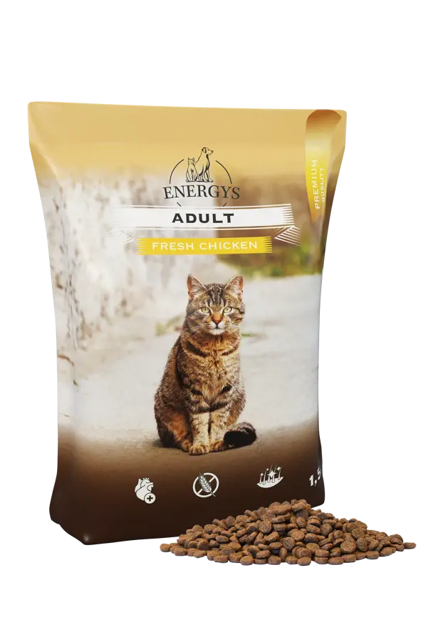 Sušená hovězí a vepřová bílkovina (29 %), bramborové vločky, hrášek, krůtí moučka (12 %), bramborový škrob, drůbeží tuk, sušené řepné řízky, čerstvé kuřecí (4 %), hydrolyzovaný protein, kvasnice (1,5 %), vitamíny a minerální látky, lososový olej (0,5 %), celulóza, extrakt z yuccy shidigery (0,2 %).