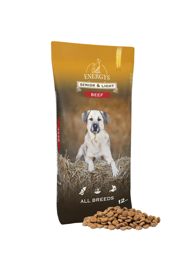 Pšenice, kukuřice, 28 % sušené hovězí, oleje a tuky, vedlejší výrobky rostlinného původu (2 % řepné řízky, 0,5 % yucca schidigera, fruktooligosacharidy 1g/kg), minerální látky (chondroitin sulfát 270 mg/kg, glucosamin chlorid 200 mg/kg).